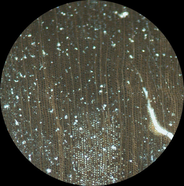 While I am an educated scientist, I never pretend to be anything more than an amateur collector that loves working with these fascinating stones and I certainly would never try to pass myself off as a paleobotanist! But I do enjoy a taste of the scientific side of a hobby that I'm primarily drawn to for the aesthetics. I love the art at least as much as I do the ancient genetic story that each piece represents. But sometimes the scientific story becomes sordid enough to overshadow the art, and this is one of those times! In 1889 Frank Knowlton published a paper describing some black fossil logs recovered from Arizona. He called the species Araucarioxylon arizonicum. Two of the three pieces he used were housed in The Smithsonian while a third was lost to time. Scandalously, when the research and specimens were examined more closely (presumably with better microscopes) the three pieces turned out to be different species. As none was ever labeled to be the holotype (single reference specimen) for the new species Knowlton was describing, the pieces became syntypes of equal weight which means you can't really have A. arizonicum hanging around in the hallowed halls of academia because, well, the syntypes aren't actually the same thing! The most comprehensive recent paper that tries to address and clean up the confusion was published by Rodney Savidge in 2007. His paper attempts to explain and re-organize what is known of the now many species that have been identified in this vast forest of giant fossil trunks in the Arizona petrified forest. One of the original three pieces was a Black Forest log that, in an apparent attempt to leave some naming credit with Knowlton, was called P. arizonicum. While it is admittedly dangerous to try to identify a conifer based on cross section detail alone, the fact that it comes from the Black Forest combined with the intercellular spaces you see in the most zoomed in microphoto makes it uniquely match this conifer in Savidges summary paper.