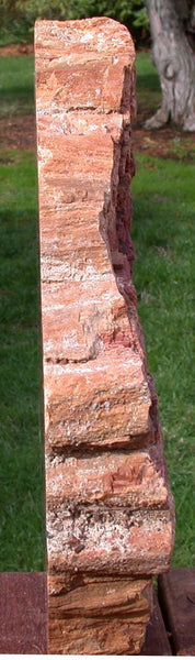 This piece is cut as a "stand-up" for displaying. If you haven't seen our standup specimens before, they are larger, blockier pieces of petrified wood cut in such a way as to present a sloping face so the pieces can be enjoyed sitting on a table, desk, shelf or mantle and the polished face is visible whether you are standing in front of them or over the top of them. The pieces are quite solid and meant to be handled. A quick squirt of Windex will remove fingerprints from the glassy polished surface.