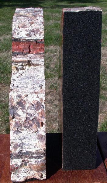 We select only the showiest pieces of petrified wood to cut into bookends. These pieces are carefully cut in our shop so that you end up with a perfectly matched pair, one agate piece is the mirror image of the other. Of course, there are plenty of differences in the two halves, but the photo should let you appreciate how well we do this. The bookends sit perfectly upright and are completely square to one another. They are felted on both the sides and bottom to protect the books and the shelf. We make sure they are 100% functional on top of being beautiful! Of course, these agates proudly show the perfect polish that the Sticks-in-Stones rockshop has dedicated itself to. The finish looks poured on - but there's nothing there except rock!! This is the only set of really red bookends we have cut from this location so don't miss this fabulous natural treasure!