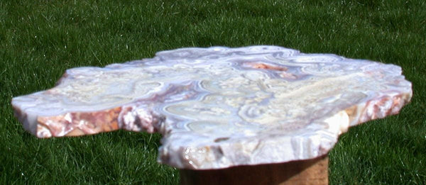 This agate is cut on a diamond saw, then sanded and polished on a series of flat laps to produce a flawless and lustrous polish that Sticks-in-Stones customers have come to appreciate as the best around! If you don't have any of our work in your collection you really should see it in person - I'm confident you'll be impressed!