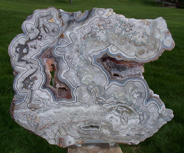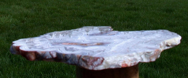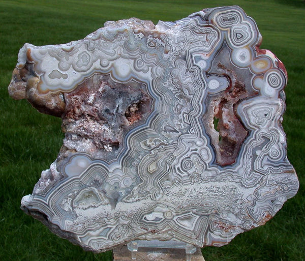 This agate is cut on a diamond saw, then sanded and polished on a series of flat laps to produce a flawless and lustrous polish that Sticks-in-Stones customers have come to appreciate as the best around! If you don't have any of our work in your collection you really should see it in person - I'm confident you'll be impressed!