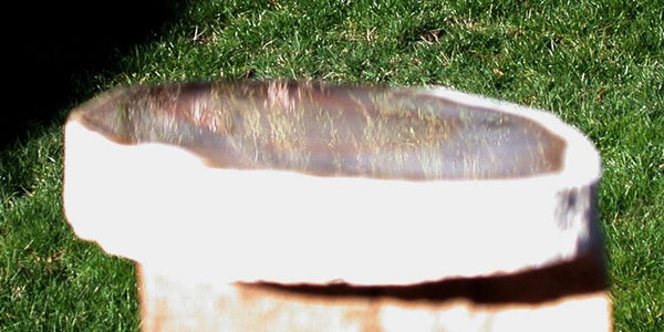 Several years ago I went on what must be the greatest of all rockhounding adventures ever! I spent a week in Brazil, part of it in the new state of Tocantins. This is the area that is producing the fabulous petrified tree ferns we've seen in recent years. I was able to find some in the field, and hand select several choice logs that I'll be cutting and polishing for months to come. This particular round is one of the best preserved, gem grade specimens I've finished so far. The log produced these lovely pastel colored rounds with a very high agate content. The color is subtle, but gorgeous. The soft pastel shades range from pink to orange and yellow with sharp contrasting zones of black and white. I'm getting to know the material and these chalk white colored logs always seem to have the highest agate density. The polish is really amazing and it allows me to show off all the detail in the well preserved trunk. Without a doubt, one of the most interesting and beautiful stones I've ever seen from that part of the world and an exciting new twist for my own petrified wood collection.