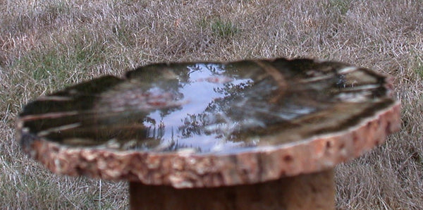 This round is cut from the center of a very solid log. It's really a nice piece, but what else would you expect from a business named "Sticks-in-Stones"?! We've applied all of our considerable lapidary skills to bring out a mirror finish and produce a specimen worthy of display in your own collection. You can also make out some of the spine scars on the edge of the slice.