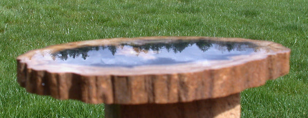 This nice specimen represents a complete, full round cut from the center of a good sized petrified log. The petrified wood from Indonesia is quite different from those I find here in the Pacific Northwest and as my own interests gravitate towards variety in species as much as locations you can imagine how exciting it is to be able to expand my collection in new dimensions! I hope you'll take this chance to do the same and obtain one of these nice collector sized slabs for your own collection! As I learn more about species I'll update my listings but for now the specifics remain a mystery. It takes a fantastic polish which really brings out every detail in the finely patterned cell structure which is easily visible under a hand lens. At first glance, this wood appears to be a typical hardwood, but under magnification the cell structure looks more complicated and unusual. What I can tell you is that it's beautiful and very well prepared so you end up with a world class specimen for your own collection and study! This round is complete, was sliced from the center of a log, and has some nice natural wood tone colors. The polish is world class - just what you've come to expect when you buy from Sticks-in-Stones Lapidary! Don't pay too much for too little - only our shop can deliver the best polish you'll ever see on petrified wood and agates on every piece we sell! This piece measures 7 1/8" x 5 7/8" across the polished face and is cut about 0.44" thick. Weight is 1.26 lbs. Stands sold separately. Sticks-in-Stones Lapidary is happily providing UPS shipping to greatly reduce shipping charges on large rock orders. We will combine all of your purchases from our shop to bring you the greatest possible value in fine Lapidary & stone collectibles!