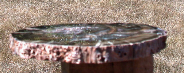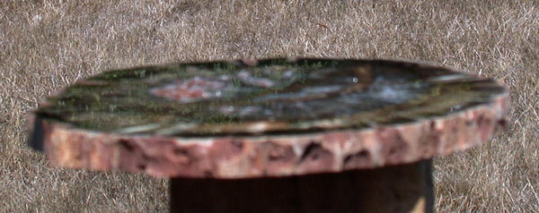 This round is cut from the center of a very solid log. It's really a nice piece, but what else would you expect from a business named "Sticks-in-Stones"?! We've applied all of our considerable lapidary skills to bring out a mirror finish and produce a specimen worthy of display in your own collection. You can also make out some of the spine scars on the edge of the slice.