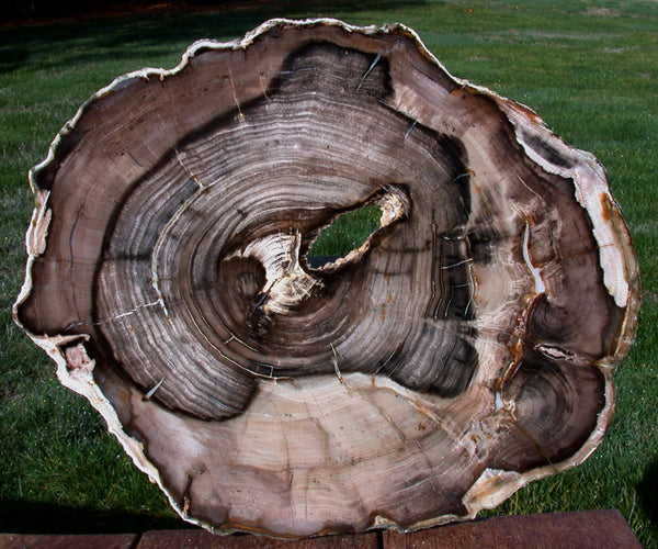 It's cut from the center of a complete petrified log that allows you to see the rays, rings and other cell features very easily with a 10x loupe (the rings and rays are visible to the naked eye). This specimen has been carefully polished to show off all the gemmy detail inside. Pretty close to fracture free too. It's another one of those beautiful fossil treasures that some happy Sticks-in-Stones customer is going to flip over!