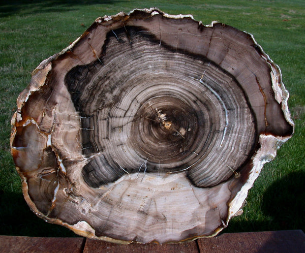 This is a fully complete, perfect and gorgeous round taken from an intricately preserved hardwood. Just look at the detailed wood grain in the zoom view above! It's preserved with absolutely gorgeous gem quality agate with a high opal content in warm, natural wood tones forever capturing this ancient fossil. Like most of the pieces in this location, the stone has a high degree of opal, particularly near the rind. This helps the stone achieve a glass like finish in our shop that is truly breathtaking! The log interior revealed in the cross-section cut is a richly colored array of gem quality agate that preserved the wood grain beautifully in every detail! The cell structure from the growth rings in this attractive fossil specimen are amazingly well preserved all the way through the face.