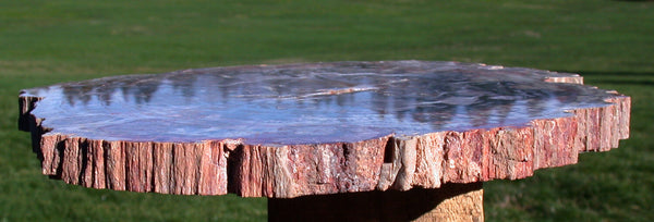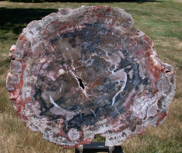 This is one of the single rarest forms of petrified wood we've had in some time and it is also one of the most attractive mid-size specimens of this sort that you'll encounter. The strange looking oval shaped patterns framing and permeating this petrified conifer tree are actually the fossil remains of a fungus that invaded this ancient tree before it was fossilized into the gemstone it is today! I've seen a few pieces of this material over the years, but this is one of finest, most richly colored and complete rounds we've had with this unusual feature. You won't find a better one in this size range I'm certain! This is actually a double fossil - the petrified wood being Araucarioxylon arizonacum and the fungus scientists have named Polyporites wardii, a parasite that covered the tree while it was still alive! The wood in this area is mineralized with silica and other impurities that mean it polishes, but not to the same mirror lustre that it's rainbow wood cousins can achieve. It's a very solid, well prepared museum piece that is both fascinating and gorgeous!