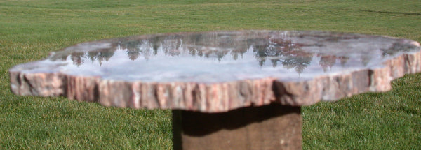 This is a slab from the center of the log and measures about 9 3/4" x 8 1/4" across the polished face and is cut approx 0.63" thick which makes it substantial enough for either wall art or as a table top. Weight is about 3.50 lbs.