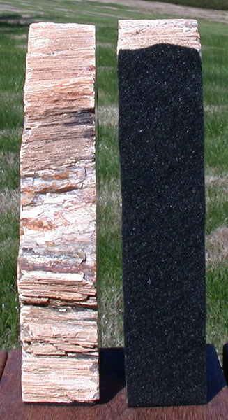 This is one of the most perfectly shaped sets of bookends I've recently cut, but when you see the glorious color pattern in this fascinating fossil wood you are really going to be amazed!! The stunning color in these stones is completely natural and in my experience, completely unprecedented in stone!! The rind is the result of a log that had been transported in water and smoothed into driftwood before it dreid to a weathered rind on a beach and was finally petrified. It now has a beautiful antiquated texture and contrasting patina color that just makes for a truly perfect set of petrified wood bookends! This cut revealed a very rich and dramatic pattern of color preserving the log in perfect detail! This is a larger sized and extremely colorful, perfectly cut set of bookends from a choice petrified wood log from Madagascar! One of the most beautiful and completely natural works of art I've seen in ages! We have worked every trick we know to extract a mirror perfect shining finish from these perfectly matched stones the likes of which you have never seen in a commercial shop - I promise! As beautiful as they are ancient, they are guaranteed to be completely unique and forever captivating!